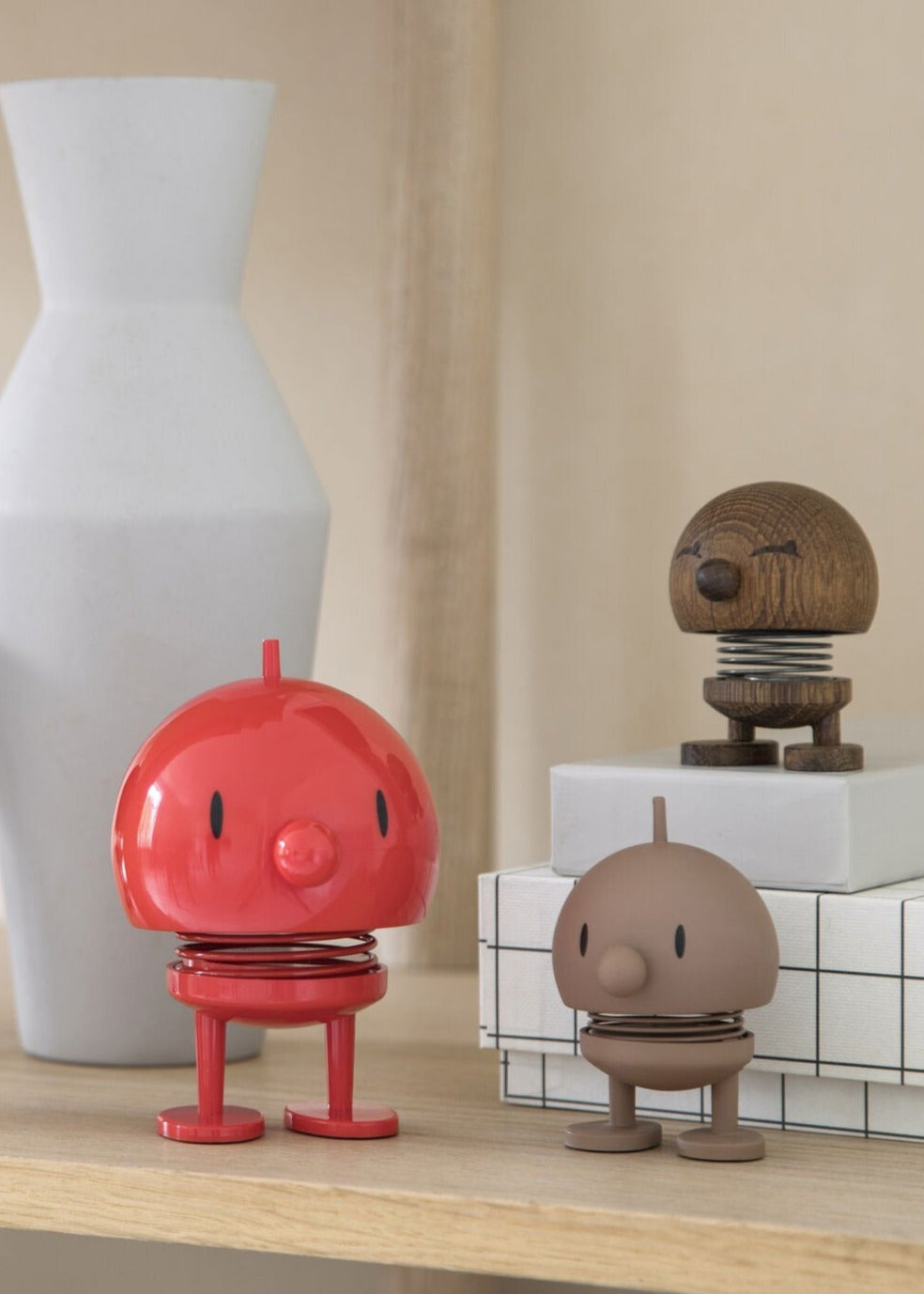 Fermement convaincu par le pouvoir du sourire, Gustav Ehrenreich a créé le joyeux mouvement Hoptimist à la fin des années 60. L’objectif était de concevoir une figurine qui rappellerait incessamment l’importance de rester positif et optimiste. Car, bien que les années 60 soient souvent appelées « les heureuses années 60 », cette décennie a été marquée par des événements perturbants. C’est pourquoi, la joie que répandait le design d’Ehrenreich était la bienvenue dans une période plutôt turbulente. Bimble et Bumble sont les tout premiers Hoptimists qu’a créés le designer : Une fille vêtue d’une robe avec des yeux souriants et un garçon attentif avec un bâtonnet sur la tête. Aujourd’hui, les joyeux Hoptimists font partie de l’histoire du design danois et créent de la joie dans le monde entier. Les figurines sont disponibles en quatre tailles différentes et dans une large sélection de couleurs qui répandent optimisme, bonne humeur et joie. Il existe un Hoptimist pour chaque occasion et chaque personne.