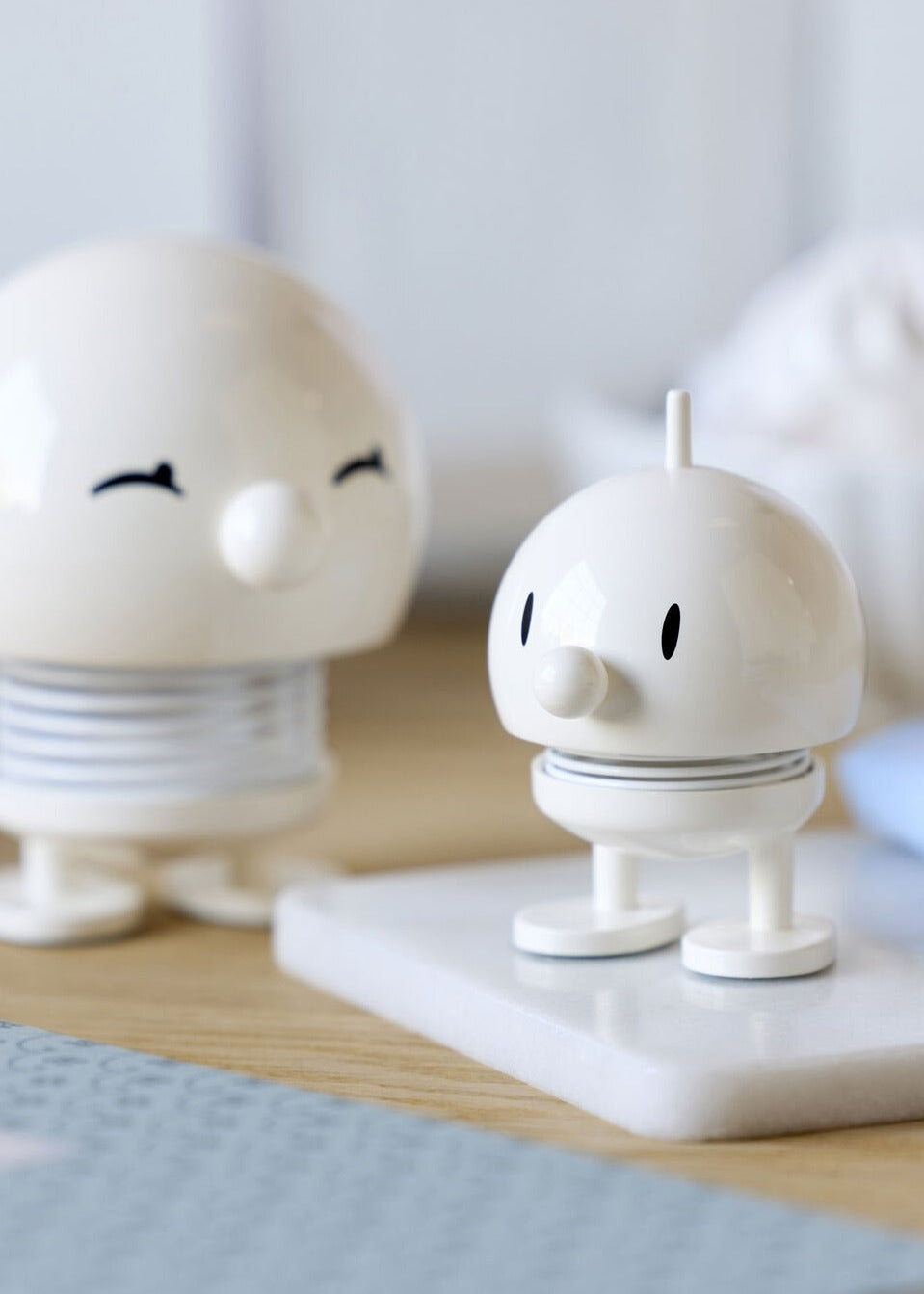 Fermement convaincu par le pouvoir du sourire, Gustav Ehrenreich a créé le joyeux mouvement Hoptimist à la fin des années 60. L’objectif était de concevoir une figurine qui rappellerait incessamment l’importance de rester positif et optimiste. Car, bien que les années 60 soient souvent appelées « les heureuses années 60 », cette décennie a été marquée par des événements perturbants. C’est pourquoi, la joie que répandait le design d’Ehrenreich était la bienvenue dans une période plutôt turbulente. Bimble et Bumble sont les tout premiers Hoptimists qu’a créés le designer : Une fille vêtue d’une robe avec des yeux souriants et un garçon attentif avec un bâtonnet sur la tête. Aujourd’hui, les joyeux Hoptimists font partie de l’histoire du design danois et créent de la joie dans le monde entier. Les figurines sont disponibles en quatre tailles différentes et dans une large sélection de couleurs qui répandent optimisme, bonne humeur et joie. Il existe un Hoptimist pour chaque occasion et chaque personne.