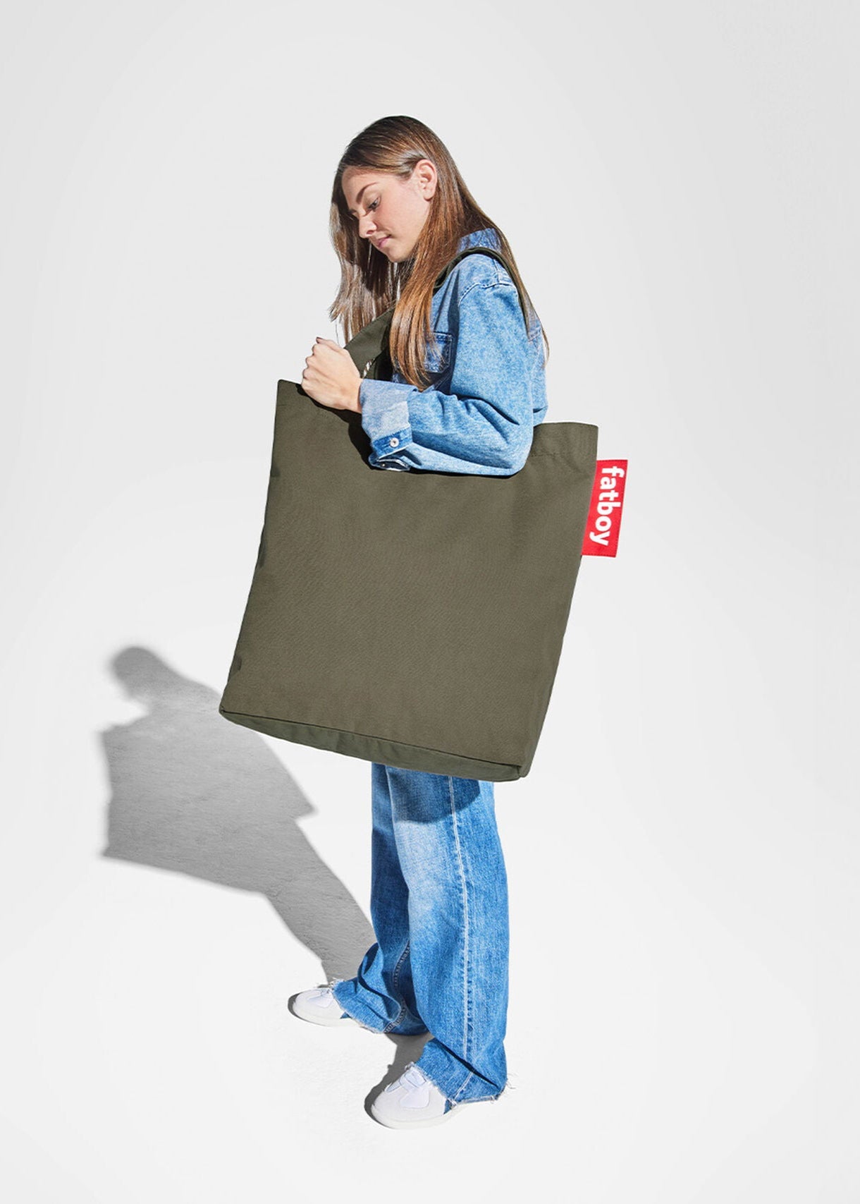 Le Carry-all-bag est un grand sac à provisions qui est fabriqué à partir de chutes de tissu des sacs en coton classiques de Fatboy. Autrement dit, il impressionne non seulement par sa taille, mais aussi par sa résistance à toute épreuve. Même s'il est simple, le Carry-all-bag attire tous les regards. Pourquoi ? Parce qu'en plus de sa grande taille, il arbore la grande étiquette rouge emblématique de Fatboy sur le côté. Tu pourras transporter tout ce dont tu as besoin. Des courses aux livres, en passant par le tapis de yoga et la raquette de padel. Plus besoin de chercher longtemps ta carte bancaire, ton téléphone ou tes clés : le sac dispose d'une petite poche intérieure très pratique - en 100% polyester ripstop avec fermeture par boutons-pression.