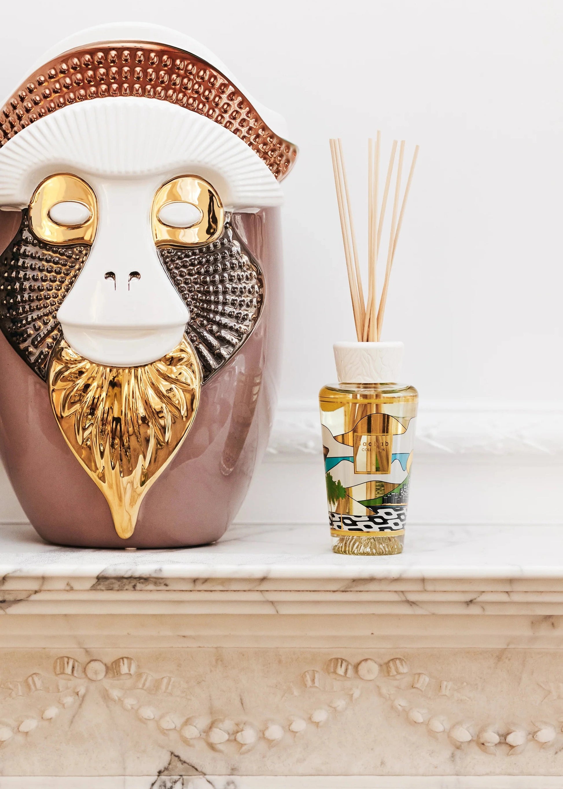 Le diffuseur de Rio est recouvert d'une sérigraphie multicolore et or à qui reflète l'architecture mythique de cette métropole. On reconnaît le musée d'art contemporain de Niterói dessiné par l'architecte Oscar Niemeyer, les pavés bordant la plage d'Ipanema et un horizon doux avec un petit bout du Mont du Pain de Sucre. Son parfum de bergamote, de thé vert et de musc vous emmènera à la chaleur de cette ville tropicale.