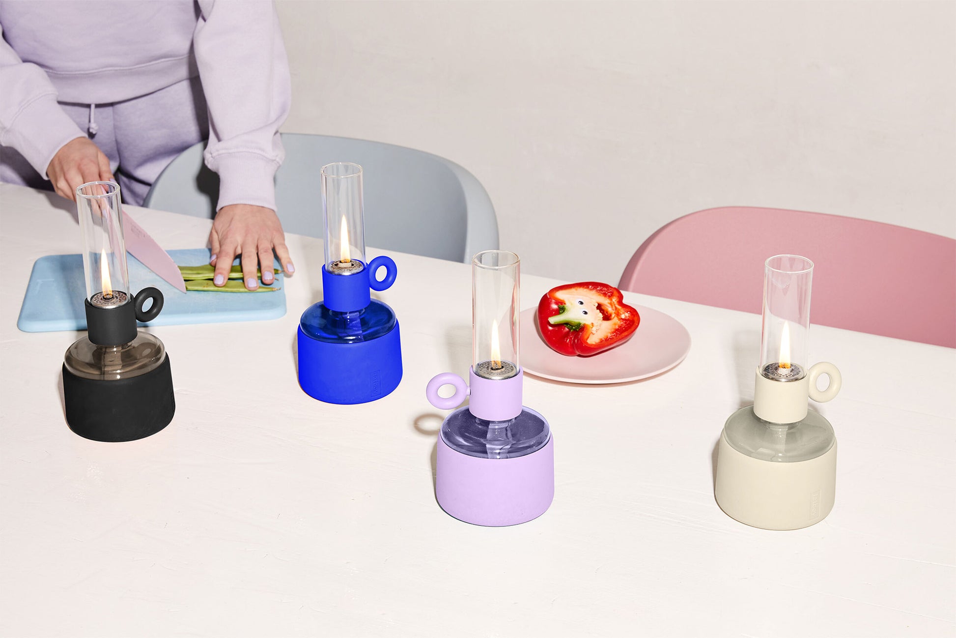 Flamtastique est la cheminée au bioéthanol surdimensionnée pour l'extérieur. Sa petite sœur, Flamtastique XS, apporte cette même ambiance de feu de camp à l'intérieur, à votre table. Nous avons transformé l'ancienne lampe à huile traditionnelle en une nouvelle version élégante. Flamtastique XS est une lampe à huile. Grâce à la partie transparente de son pied, vous pouvez toujours voir exactement la quantité d'huile restante. Et son revêtement en silicone mat rend cette lampe à huile en verre très résistante. Pour allonger la mèche, tournez simplement la anse. Pour des soirées inoubliables sans fin...