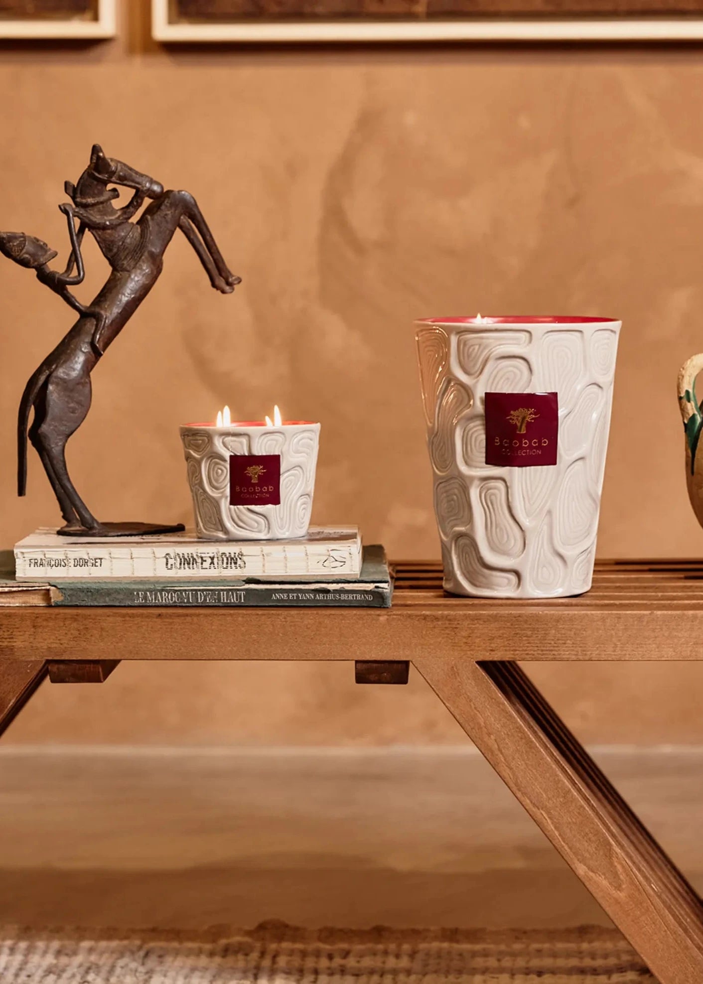 El Glaoui rend hommage au seigneur de Talhouet et à la tribu des Glaoua. La céramique, réalisée à la main par nos artisans, est ornée de motifs géométriques inspirés des murs de fortification des ksars. L’émaillage bicolore, alliant une finition naturelle et brillante à l’extérieur à une couleur prune et mate à l’intérieur, témoigne de la dextérité des céramistes.