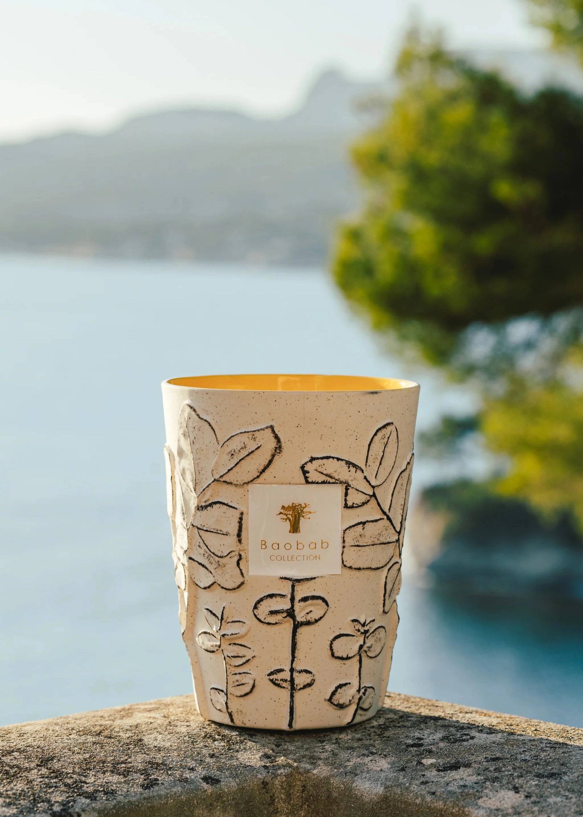 La bougie parfumée Maquis a été réalisée dans une céramique artisanale fabriquée à la main au Portugal. L’émail mat et vert chiné qui recouvre la céramique est contrasté par un intérieur émaillé en rose brillant.