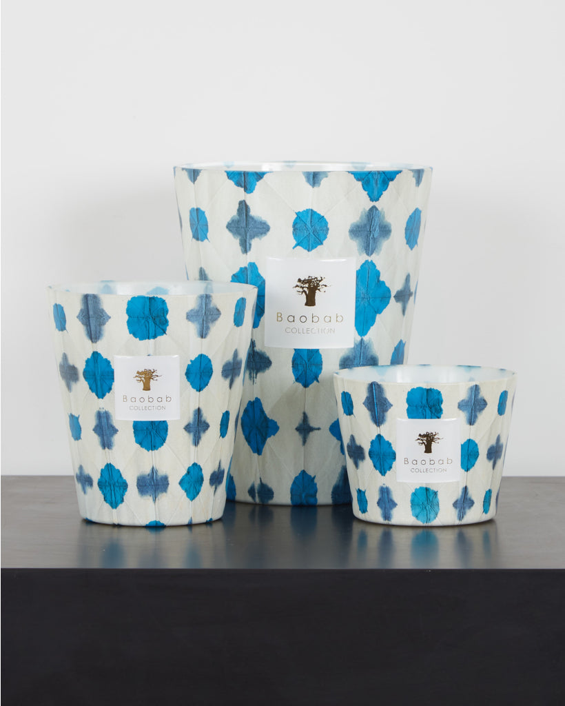 La bougie parfumée Ulysse est réalisée dans un verre décoré d’une sublimation aux motifs bleu et turquoise. Le verre laisse transparaître la flamme tel de l’albâtre, donnant un effet raffiné et mystérieux.