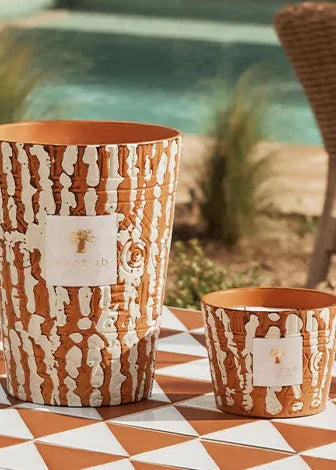 La bougie parfumée Papunya est émaillée d'une couleur ocre rouge avec des lignes blanc cassé, lui conférant un aspect très tribal. La céramique est gravée de symboles de l'art aborigène. Papunya est un lieu artistique où se rassemblent les communautés aborigènes, berceau du mouvement artistique aborigène.